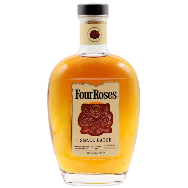 A blend of four recipes (OBSO, OESO, OBSK, and OESK), Four Roses Small Batch is aged between 6-7 years and bottled at 90 proof. This blended bourbon starts smooth and sweet, with sasparilla and maple sugar, then explodes with bold cassia, cinnamon and caye